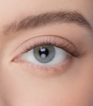 Nærmynd af fyrirsætu sem leysir upp augnhárin